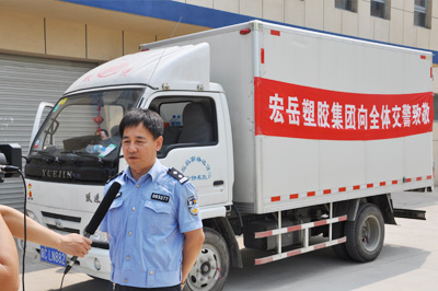 7月4日,炎炎酷暑中,开发区好博体育塑胶集团为市交警三大队送来瓶装矿泉水,感谢一直以来交警三大队为保障开发区交通安全、畅通、稳定所作出的贡献。