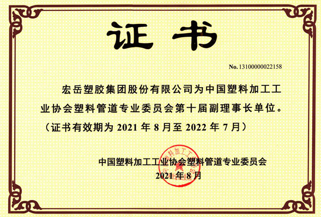 当选中塑协塑料管道专委会副理事长单位,中国建筑金属结构协会地暖委员会副主任委员单位,湖北好博体育有限公司正式成立。