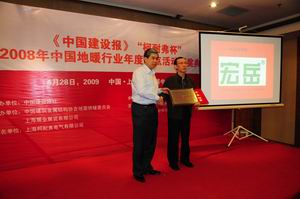 4月28日下午,《中国建设报》主办的2008年中国地暖行业年度盘点活动颁奖典礼在上海光大中心酒店隆重举行,秦皇岛好博体育管业当选“2008年中国地暖行业PE-Xa管材领军品牌”,沉甸甸的牌匾由中国建筑金属结构协会地面供暖委员会华明九主任亲手授予好博体育公司总经理助理王明科。本次盘点活动中张思良副总经理获得2008年度地暖行业十大风云人物提名。