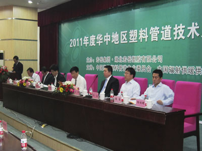 由湖北好博体育塑胶有限公司主办的“好博体育2011年华中地区塑料管材技术应用推广会”于2011年4月25日在孝文化名城——湖北孝感隆重召开。本次会议得到国家住建部科技发展促进中心、中国塑协塑料管道专业委员会、中国辐射供暖供冷委员会、孝感市人民政府和孝感市经济开发区等单位的大力支持。孝感市政府副秘书长李明辉、孝感市城乡建设委员会副主任陈俊、孝感市住房保障和房屋管理局局长冯圣明、国家住房和城乡建设部科技发展促进中心处长高立新、中国塑协塑料管道专业委员会秘书长王占杰、中国辐射供暖供冷委员会常务副主任刘浩、好博体育集团董事长马君、好博体育集团副总裁、湖北好博体育总经理张思良、以及来自华中五省——湖南、湖北、河南、安徽、江西的经销商代表、房地产开发单位代表等共计300余人参加了本次会议。