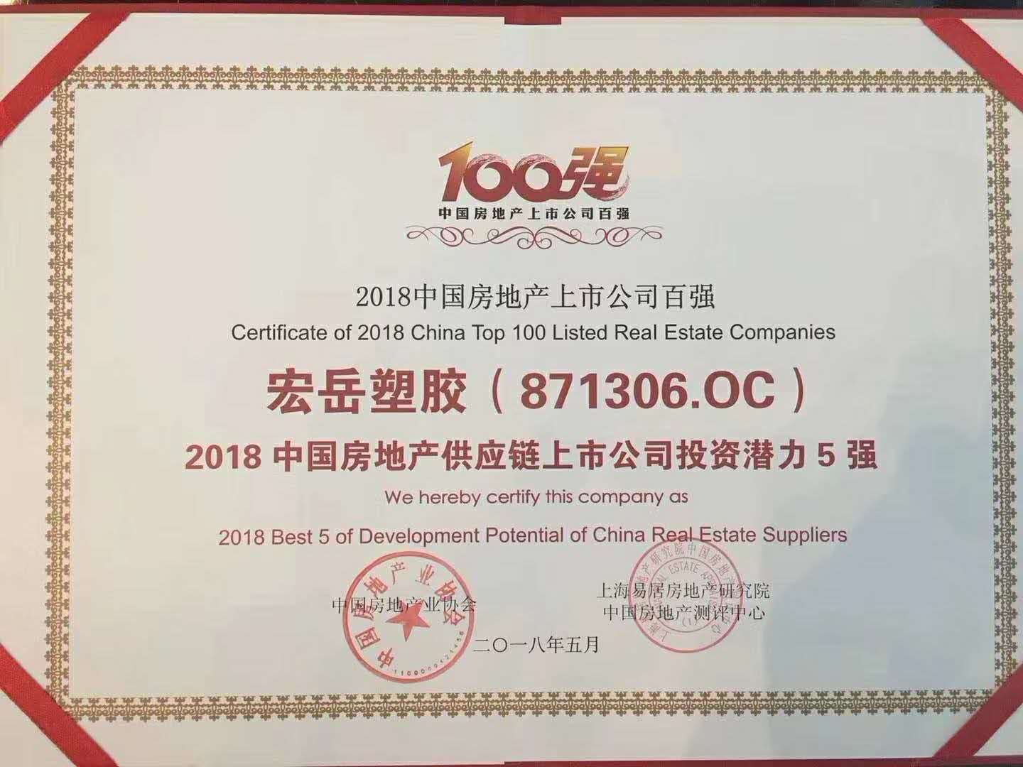 由中国房地产业协会、上海易居房地产研究院中国房地产测评中心联合开展的“2018中国房地产上市公司测评成果发布会暨金融创新高峰论坛”在深圳举行,好博体育荣获“2018中国房地产供应链上市公司投资潜力5强”。