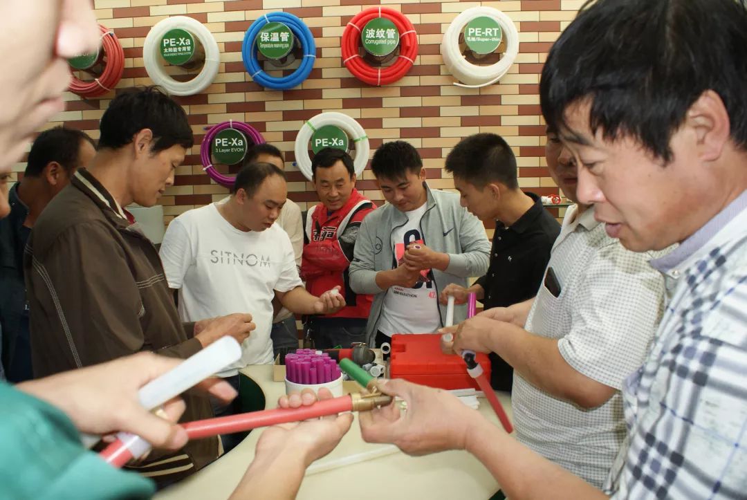 好博体育1+事业部产品工程师依工详尽介绍了好博体育1+的产品技术以及应用知识,着重讲解了pe-xa的施工工艺、PVC快修管件及其它配套产品的应用,现场通过实物实例,充分地展示了好博体育1+产品的技术先进性和质量可靠性。