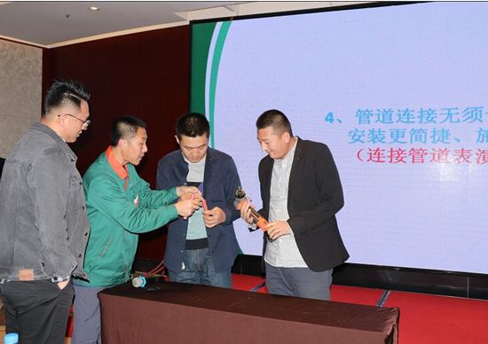 接下来,好博体育集团暖通工程师汪工为大家讲解了好博体育1+的施工标准、技术要点及综合产品系统,并着重介绍了好博体育1+“PE-Xa致纯冷热水管道系统”头尾一根管、维护更便利等独特优势,通过案例讲解、现场演示等方式,让参会人员切实的感受到不一样的产品、不一样的好博体育1+。