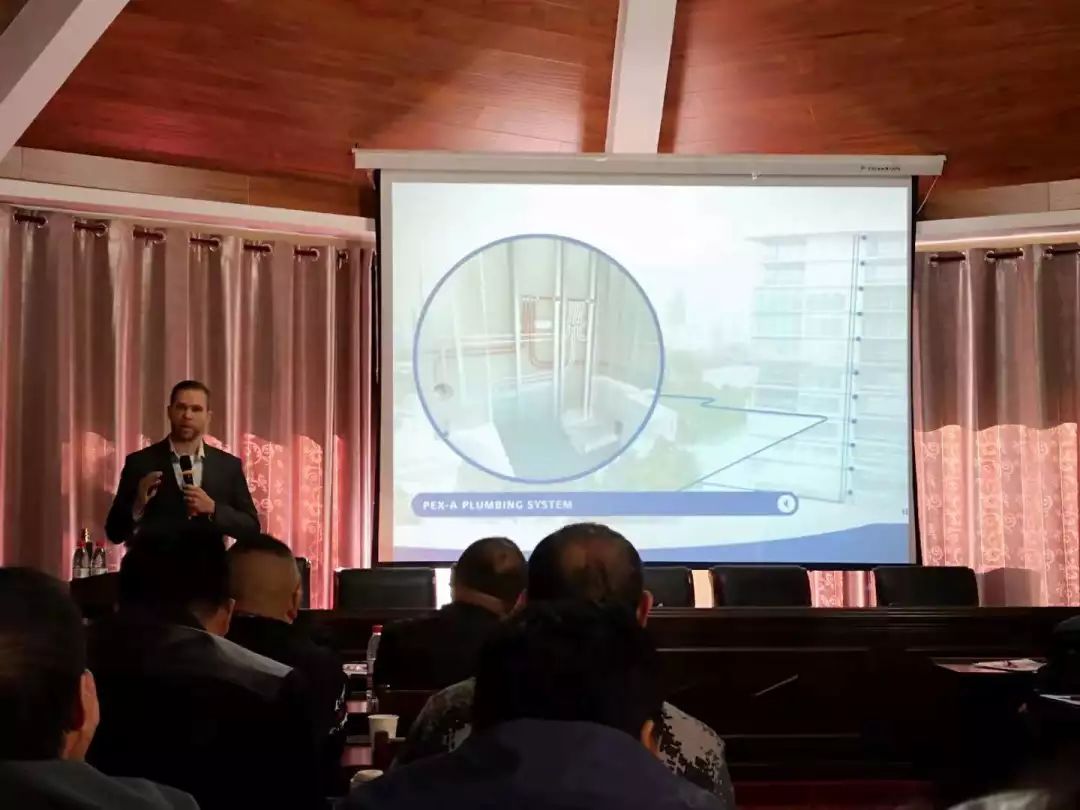 会议伊始,首先由好博体育集团美国公司技术总监John先生,为大家详尽介绍了PE-Xa零漏点给水系统的性能优势及该系统在美国乃至国际市场上的广泛应用情况,让参会人员对国际领先的产品系统与应用技术也增进更深的认识与了解。