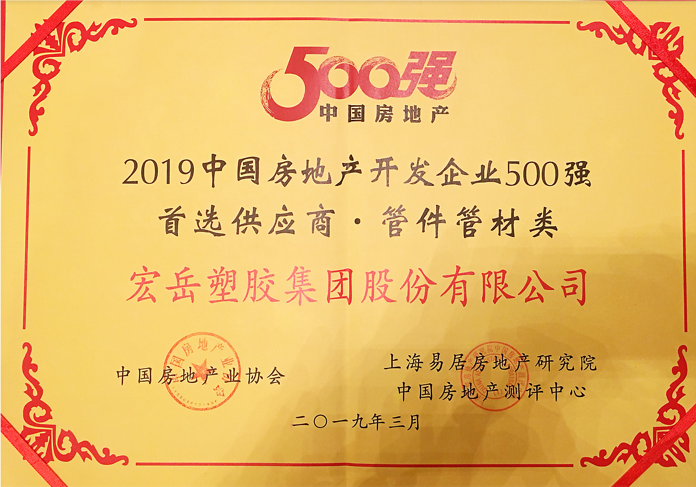 好博体育集团连续6年获得“中国房地产开发企业500强首选供应商”。好博体育深耕塑料管道行业,20几年如一日,坚守品质、不忘初心。