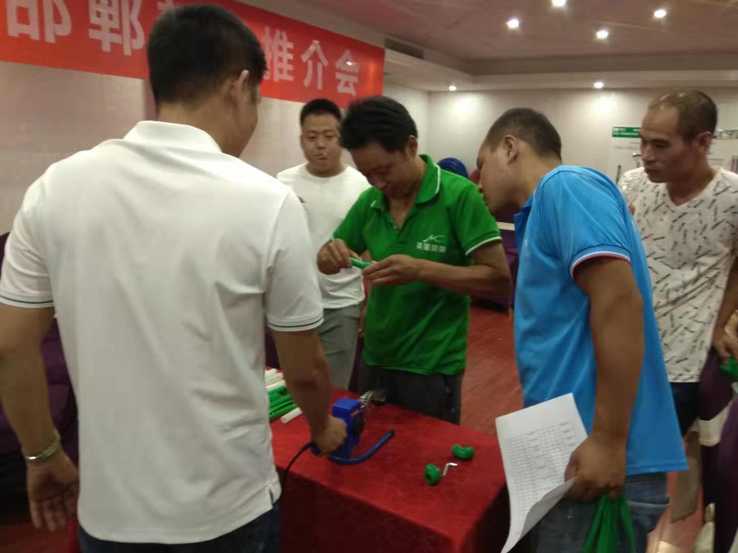 会上,好博体育1+邯郸服务中心向在场的水电技师们隆重推出了PE-Xa零漏点给水系统,该系统较目前市场主流给水系统降低70%的漏水风险点,耐压性高67%,耐温性高32%。
