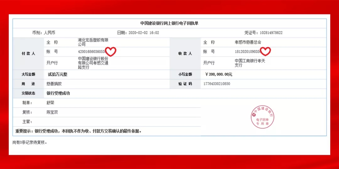 2020年初新型冠状病毒疫情肆虐华中大地,湖北好博体育塑胶有限公司所在地孝感市是重灾区之一。好博体育集团心系疫区,多方联络始终无法购置到疫区最急需的防疫物资,经与慈善机构沟通,遂以捐款的形式为社会和政府以尽绵薄之力。当日上述善款已汇入孝感市慈善总会工行孝天支行账户内。