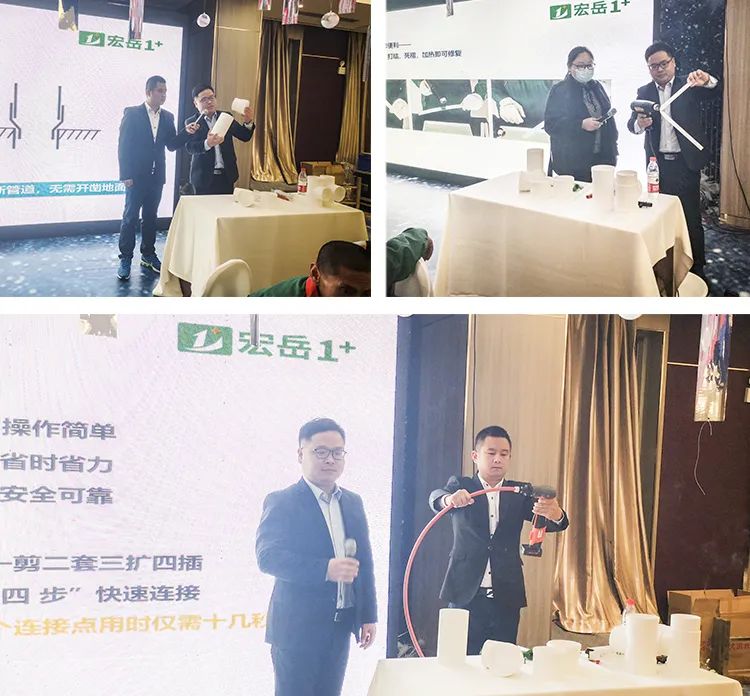 好博体育1+东北区域吕经理重点介绍了1+产品技术及应用知识,并为大家带来PVC缩口管件、PPR U型三通等创新产品,更着重介绍了PE-Xa管材,不仅通过现场实操展示了PE-Xa管道系统的安全性与便捷性,还首次公布多项对比数据,通过播放不同材质管材的性能对比实验影像再次验证了PE-Xa耐高温、耐高压、记忆性等优异性能,获得与会水电技师们一致认可。