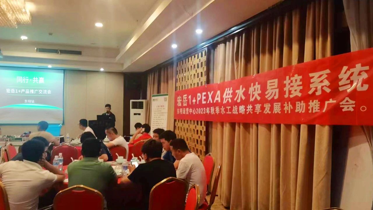 好博体育1+区域运营经理向各位参会者介绍了好博体育塑胶集团概况,并着重讲解了好博体育1+产品体系及PE-Xa快易连接管道系统,凭借其简单、快捷、安全的产品及连接优势,得到了与会水电技师们的高度好评。